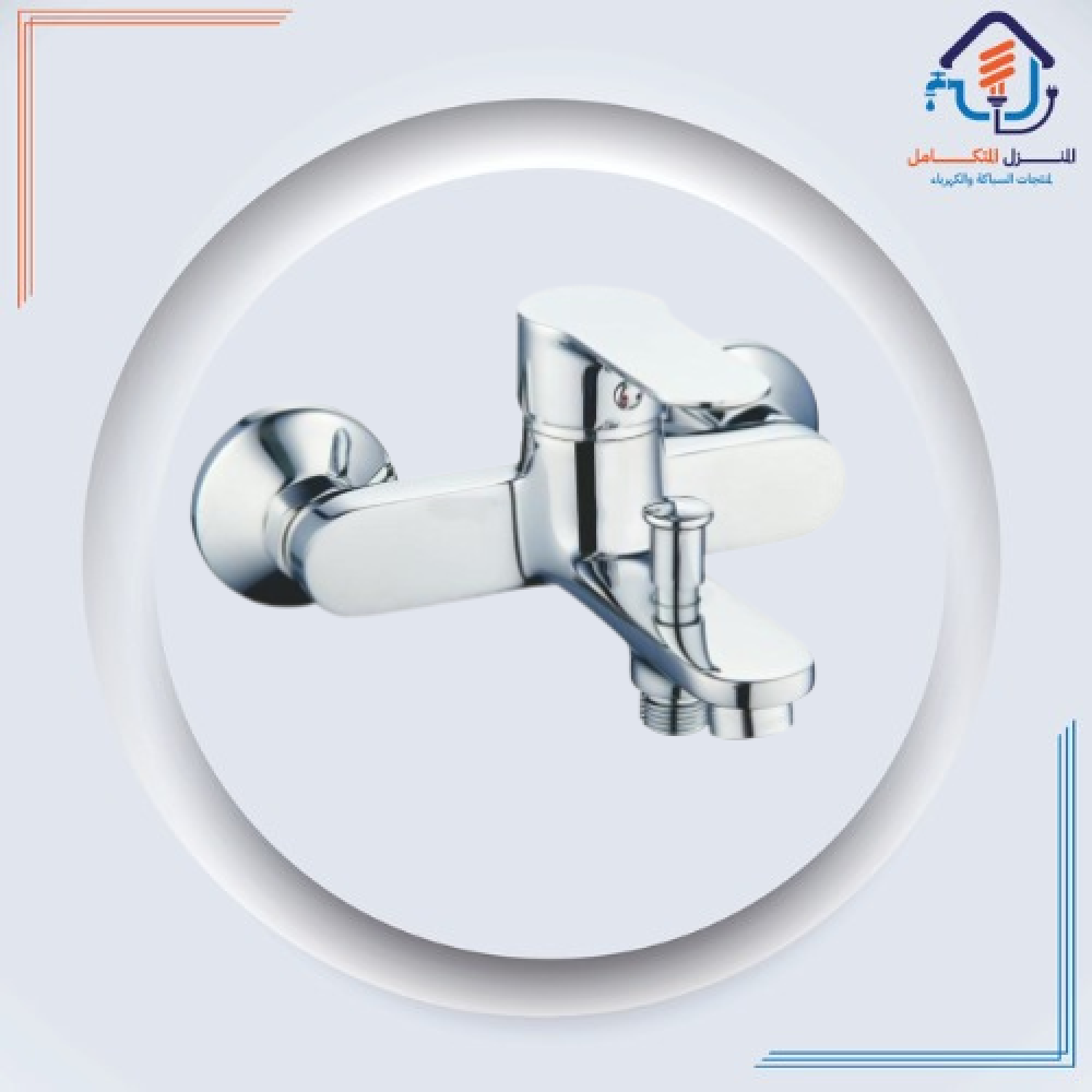 الملحقات :خلاط دش مطلي كروم مع لي مطلي كروم بطول (150) سم ، سماعة بقطر (10) سم ، عدد (2) صامولة تثبيت ، وعدد (2) شماسة