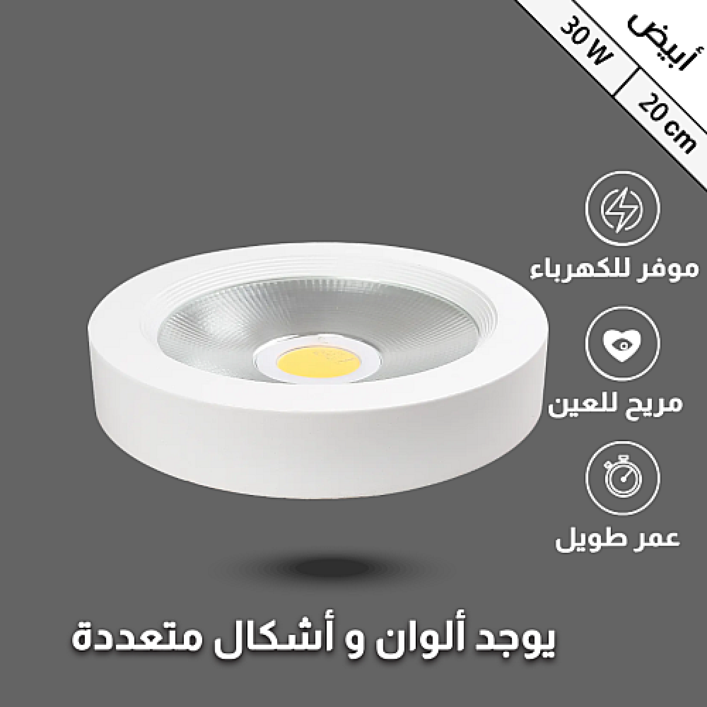 وصف لمبة لطش LED للسقف – 30 واط، إضاءة بيضاء، 20 سم، مع عاكس شفاف