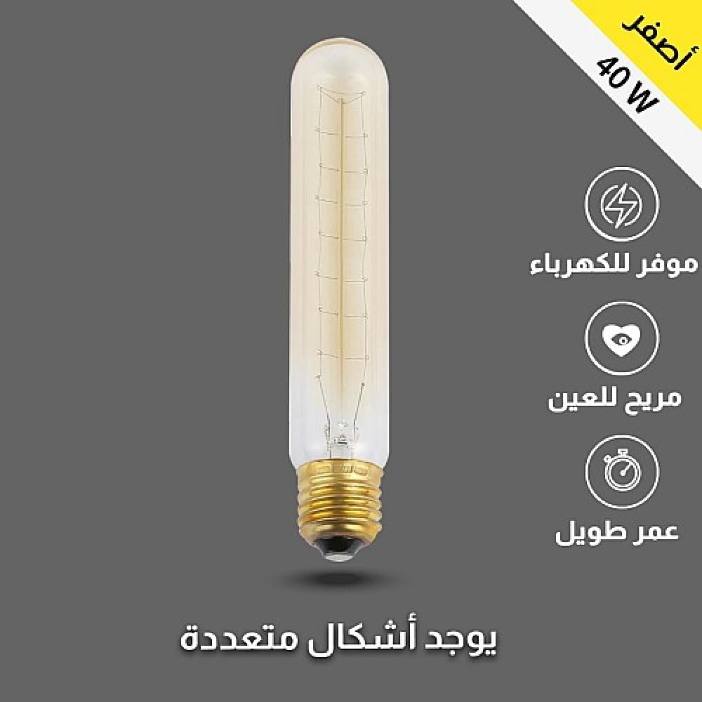 لمبة لون الإضاءة الأصفر العسلي، تيوب زجاجي شفاف، متوافقة مع دايمر، قاعدة E27، قوة 40 واط