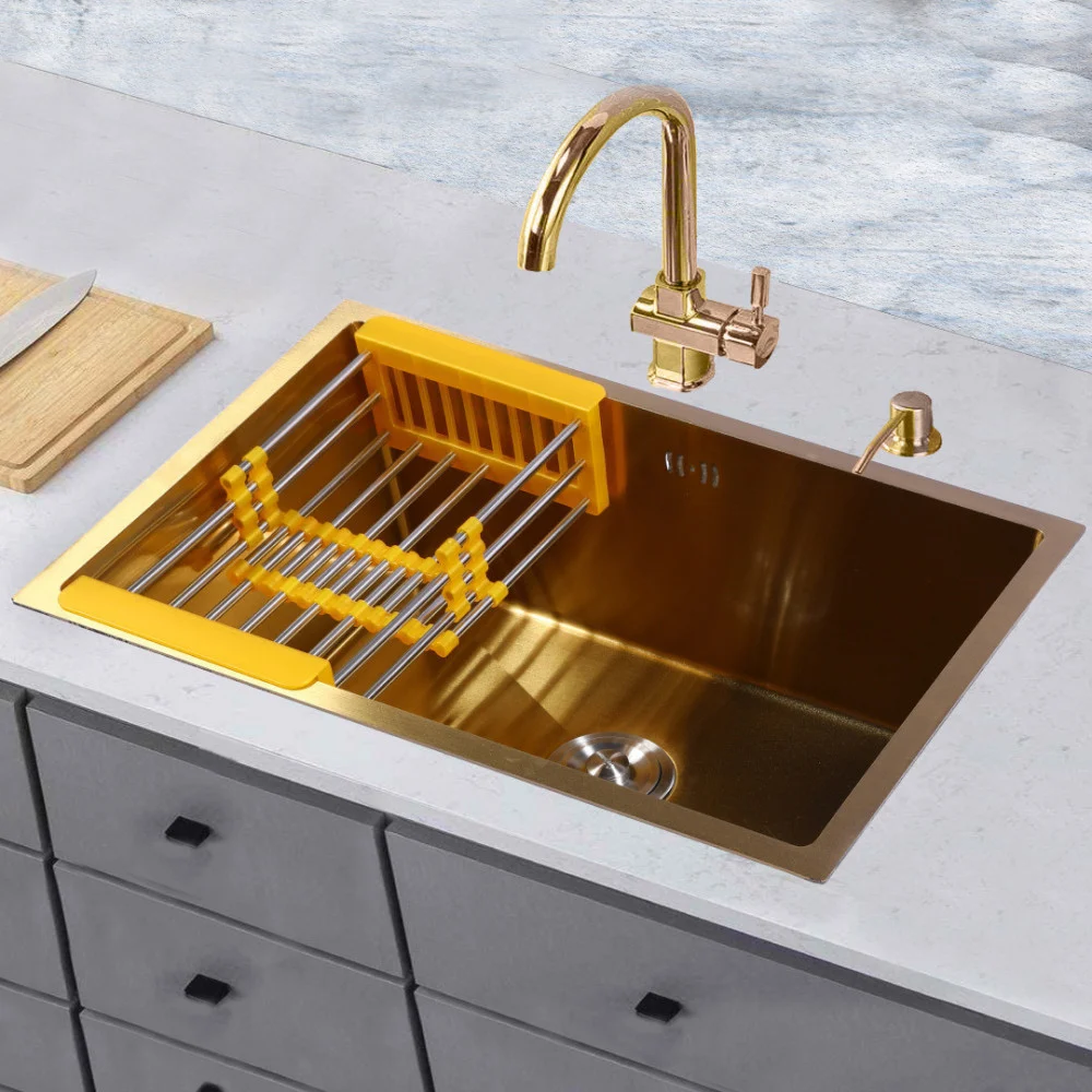 مجلى تسقيط ستيل ذهبي مقاس 45 /75 صناعة صينية في سمك 2.6 مع الشبك و الهراب بدون فتحة خلاط